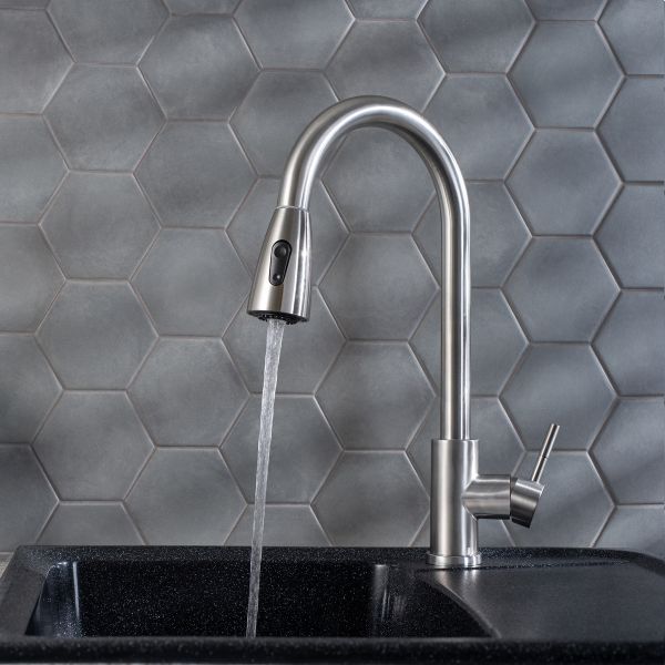 Однорычажный смеситель из нержавеющей стали с высоким выдвижным изливом обладает насадкой аэратором с двумя режимами подачи воды станет незаменимым помощником на вашей кухне.