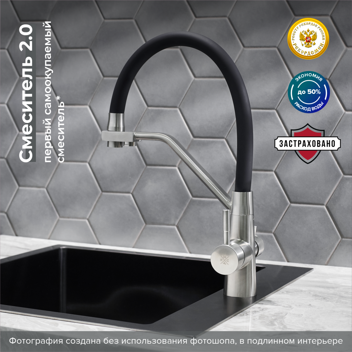 Смеситель для кухни РМС SUS127BL-016F-015 с подключением фильтра нержавеющая сталь купить