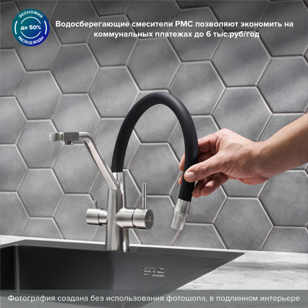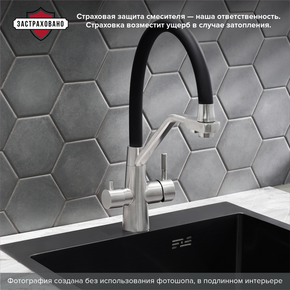 Смеситель для кухни РМС SUS127BL-016F-015 с подключением фильтра нержавеющая сталь