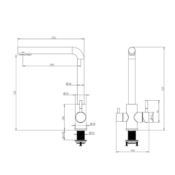 Смеситель для кухни с подключением фильтра Knotlor SS-08, сатин