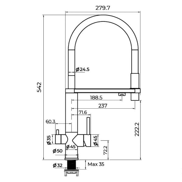 • Высота смесителя:
