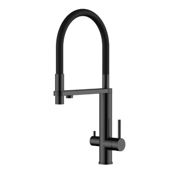 Современный смеситель с гибким изливом и функцией фильтрации. Элегантность и здоровье в одном устройстве. Черный матовый цвет подчеркнет современность интерьера. Смеситель для кухонной мойки Knotlor SS-15/BL INFINITY - идеальное решение для вашей кухни! Изготовленный из нержавеющей стали, он гарантирует долговечность и стабильность на многие годы. Гибкий поворотный силиконовый излив обеспечивает максимальный комфорт при использовании, позволяя легко настроить струю воды под ваши нужды. Одним из ключевых преимуществ смесителя является возможность подключения фильтра для воды. Теперь у вас всегда будет доступ к чистой и свежей воде прямо из вашей мойки. Отдельный рычаг для подачи чистой воды от фильтра: подключается через отдельный шланг к системе фильтрации водопроводной воды, например марки Гейзер, Барьер и другие. Фильтр приобретается отдельно. Дополнительный излив служит не только для подачи фильтрованной воды, но и как держатель для гибкого излива, когда тот не используется, что добавляет удобства в повседневном использовании. Керамический картридж и рычажное управление обеспечивают плавное и точное регулирование температуры воды, а также экономию водных ресурсов. Стильный и функциональный дизайн гармонично впишется в интерьер любой кухни, создавая удобство и комфорт при использовании смесителя. Не откладывайте покупку кухонного смесителя Knotlor SS-15/BL INFINITY - сделайте свою кухню еще более удобной и современной уже сегодня!