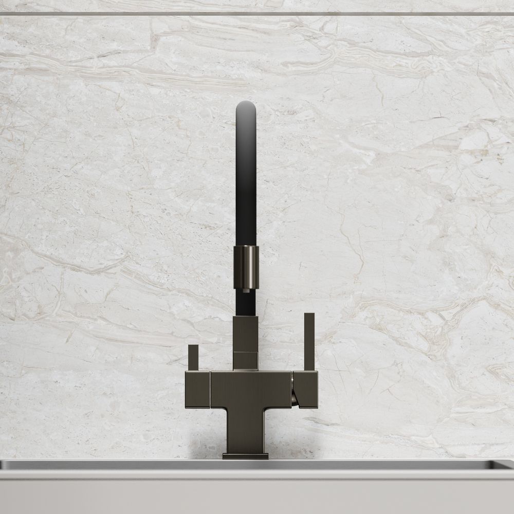 Смеситель для кухни SANCOS Arno с гибким изливом и возможностью подключения фильтра для воды, цвет вороненая сталь, арт. SC4005GGФункция "Холодный старт" - при включении смесителя активируется холодной поток, для экономии горячей водыАэратор, гибкая подводка, ключ и крепления для монтажа