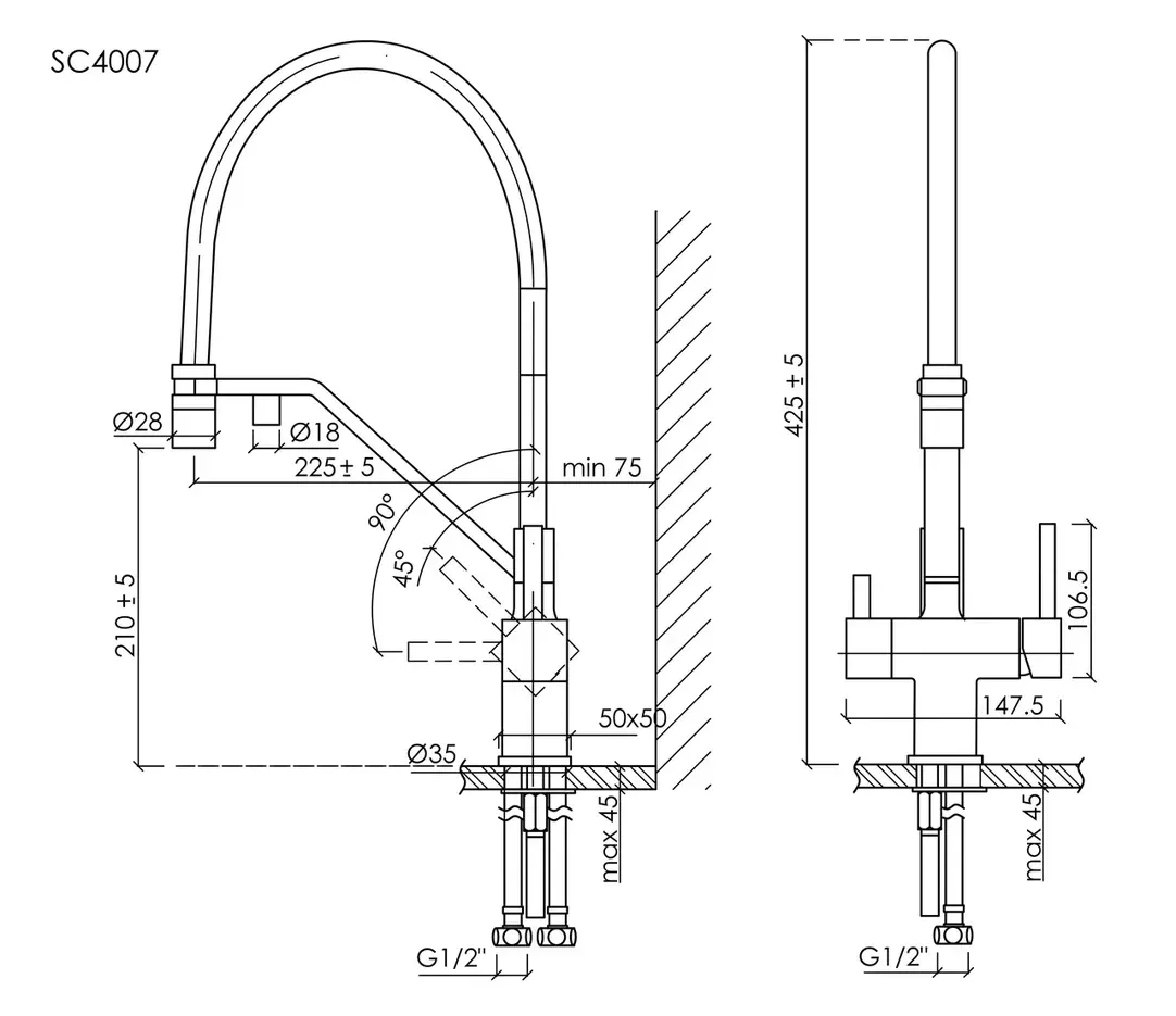 Смеситель для кухни SANCOS Loro с гибким изливом и возможностью подключения фильтра для воды, цвет вороненая сталь, арт. SC4007GGФункция "Холодный старт" - при включении смесителя активируется холодной поток, для экономии горячей водыАэратор, гибкая подводка, ключ и крепления для монтажа