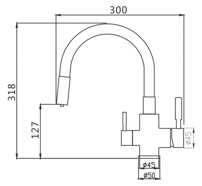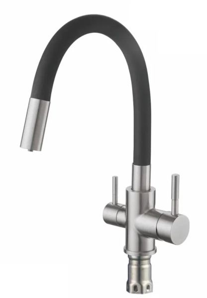 Смеситель для кухни с гибким изливом и подключением фильтра Shevanik S568B, сатин/черный.Управление: рычажное.Вращение излива: да.Выдвижной излив: нет.Гибкий излив: да.Высота:31,8.