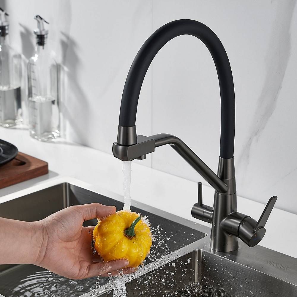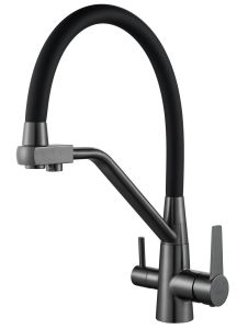Смеситель для кухни Shevanik S968T с подключением фильтра оружейная сталь