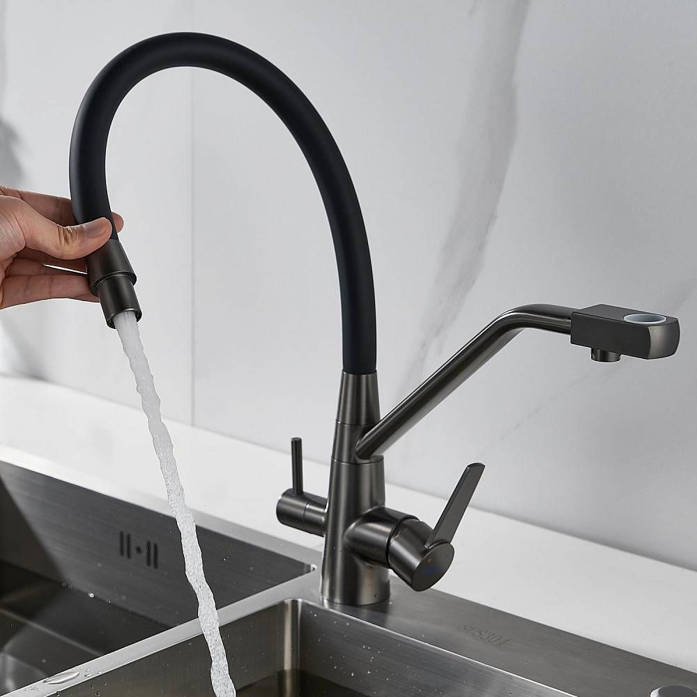 Смеситель для кухни с подключением фильтра и гибким изливом Shevanik S968T, оружейная сталь.Управление: рычажное.