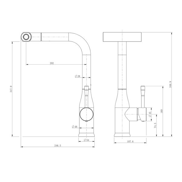 Смеситель оснащён выдвижным и поворотным изливом с режимом «душ», который позволяет выбирать между обычной струёй воды и мягкой душевой насадкой. Благодаря этому вы сможете легко и быстро настроить нужный режим в зависимости от ваших потребностей и предпочтений.