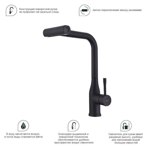 Смеситель для кухни Splenka S206.49.06 с мультифункциональным изливом чёрный купить