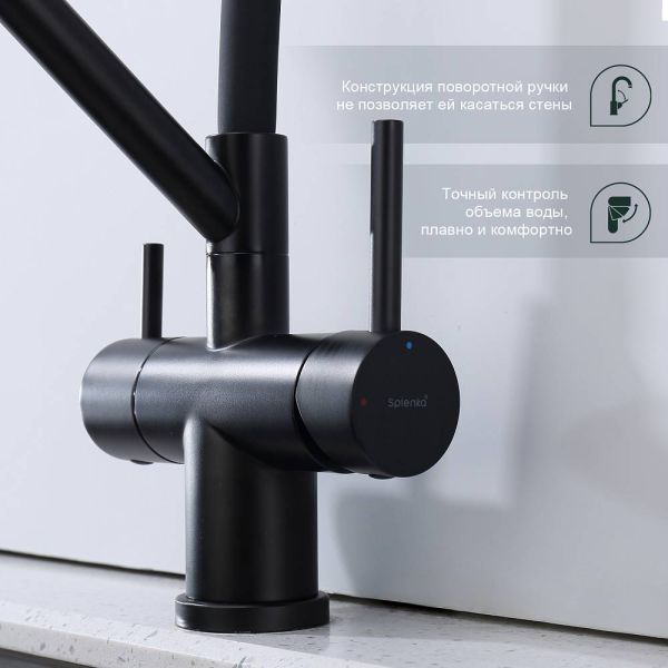Смеситель для кухни Splenka S70.62.06 с подключением фильтра чёрный купить