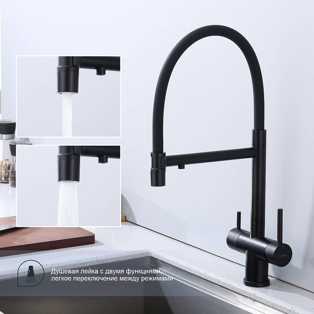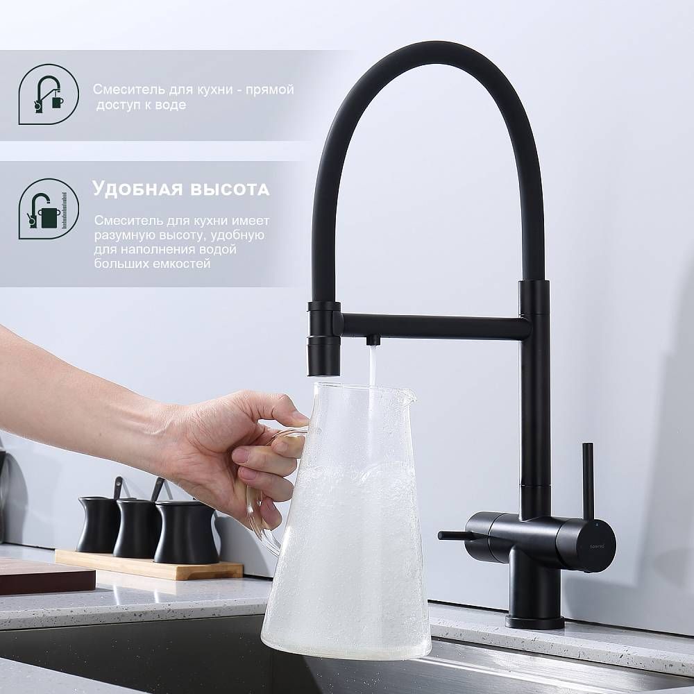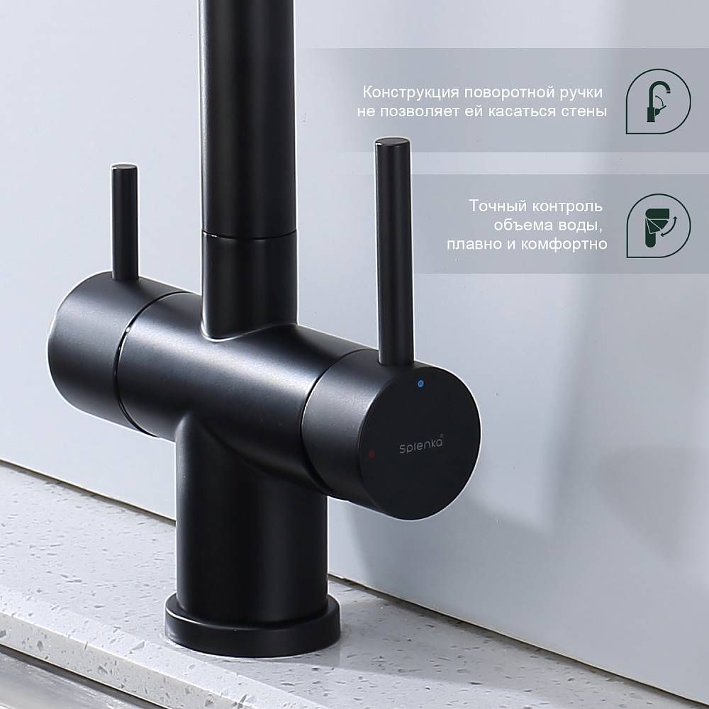 Смеситель для кухни Splenka S70.63.06 с подключением фильтра чёрный купить