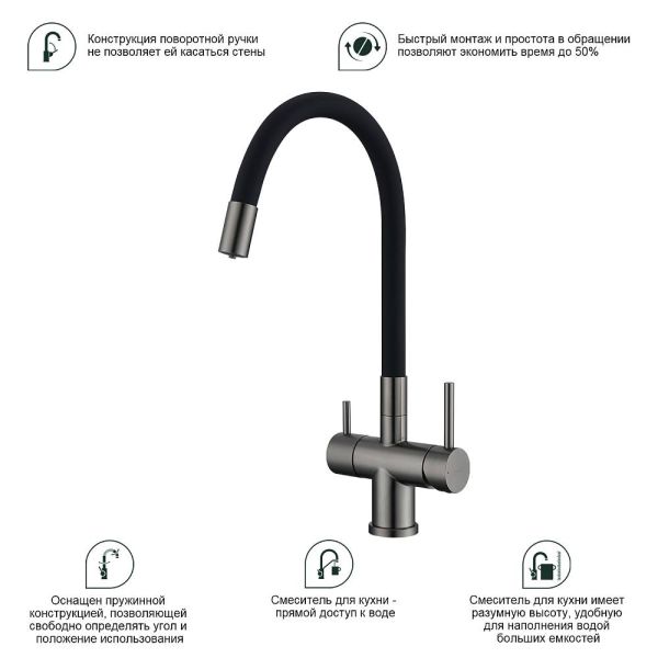 Смеситель для кухни Splenka S70.64.09 с подключением фильтра графит