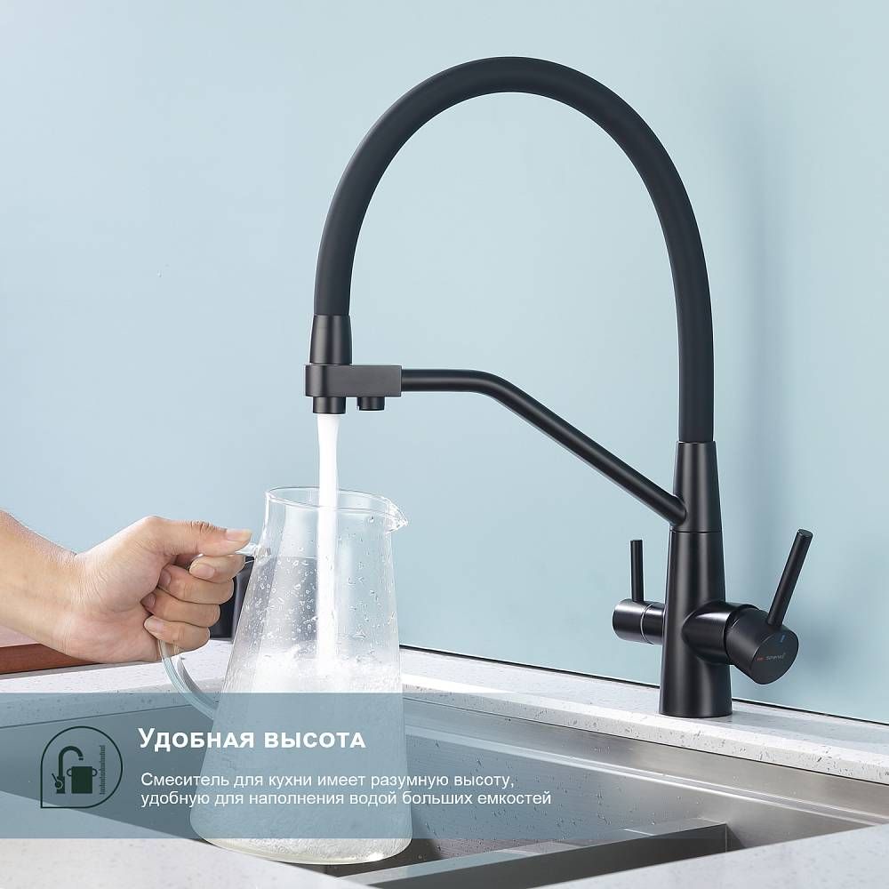 Смеситель для кухни Splenka S71.62.06 с подключением фильтра чёрный купить