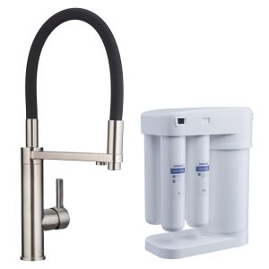 Смеситель для кухни Swedbe Selene Plus 8640M в комплекте с фильтром Аквафор Морион нержавеющая сталь/чёрный