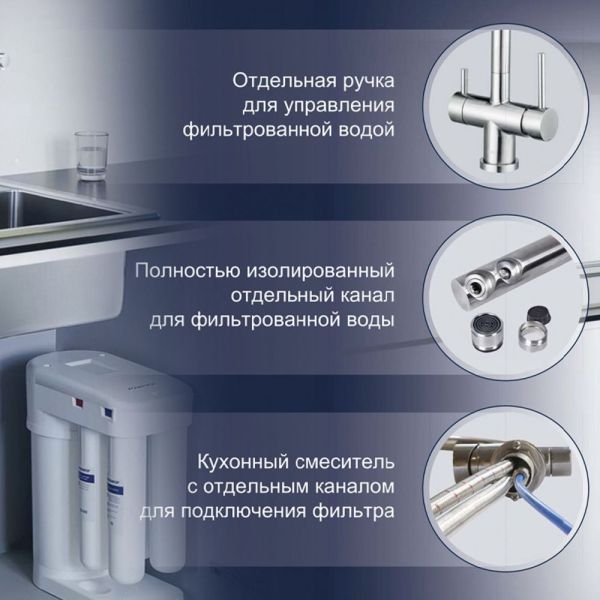 В комплект входит: Фильтр Аквафор Морион DWM-101S, смеситель для кухни каналом для подключения ... Подробнее
