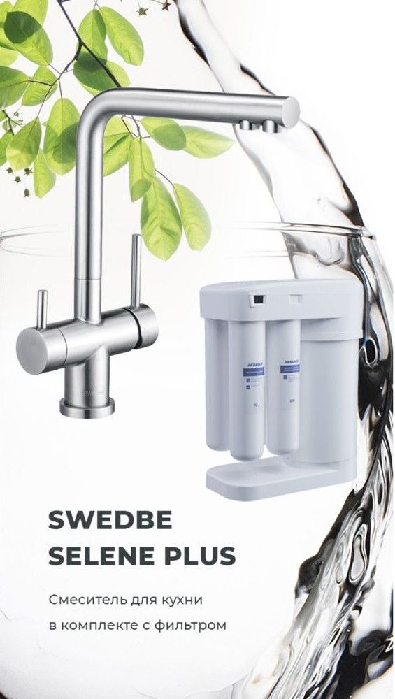 Смеситель для кухни Swedbe Selene Plus K8144M в комплекте с фильтром Аквафор Морион нержавеющая сталь купить