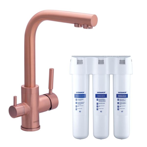 Смеситель для кухни Swedbe Selene Plus K8148K в комплекте с фильтром Аквафор Кристалл медь
