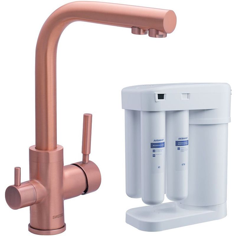 Смеситель для кухни Swedbe Selene Plus K8148M в комплекте с фильтром Аквафор Морион медь купить