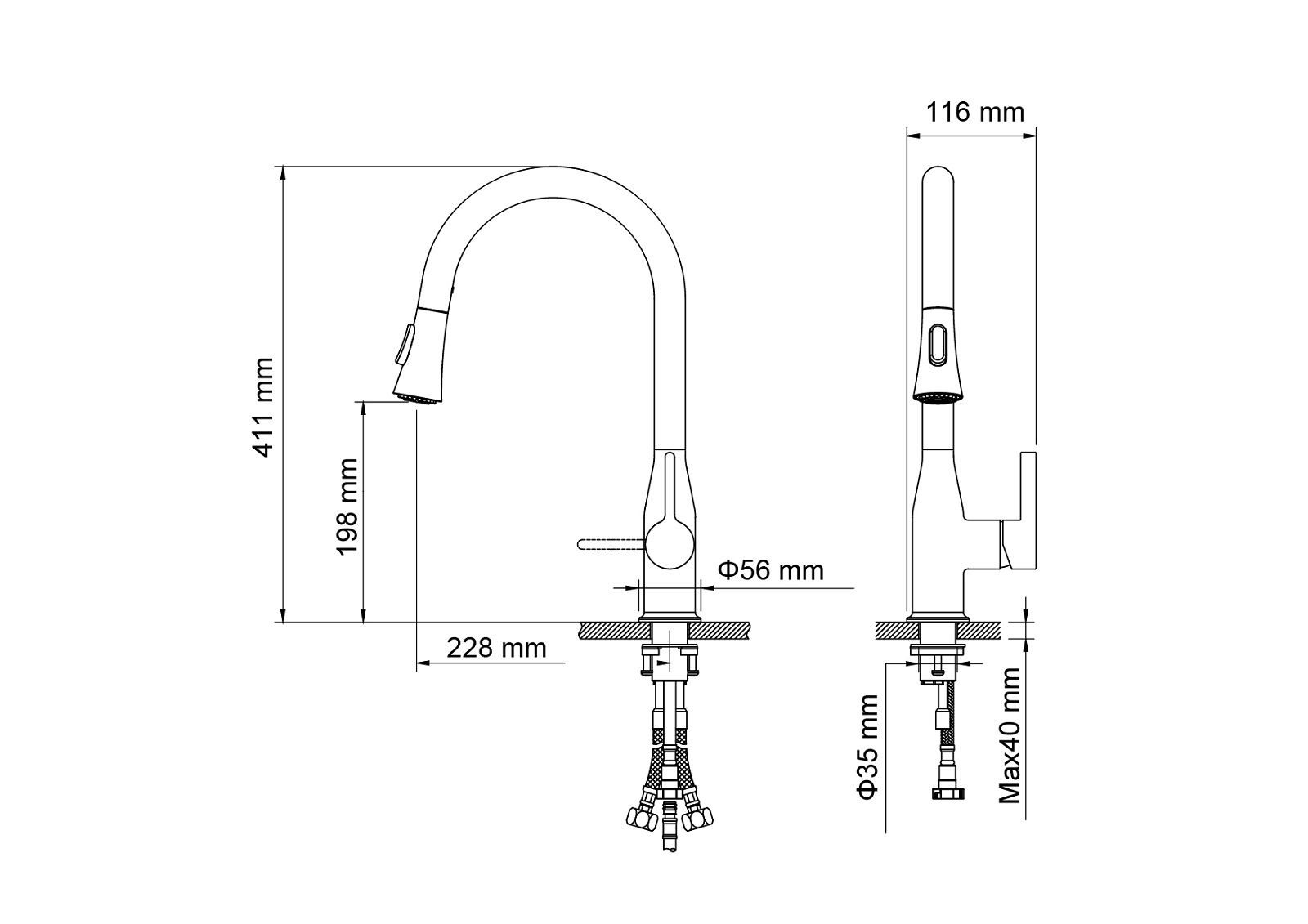 • Высота смесителя: