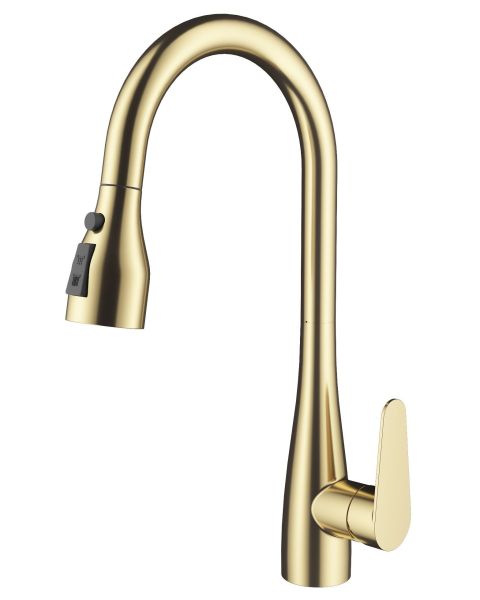 Смеситель для кухни Wonzon & Woghand WW-121E201B-BG с выдвижным изливом брашированное золото