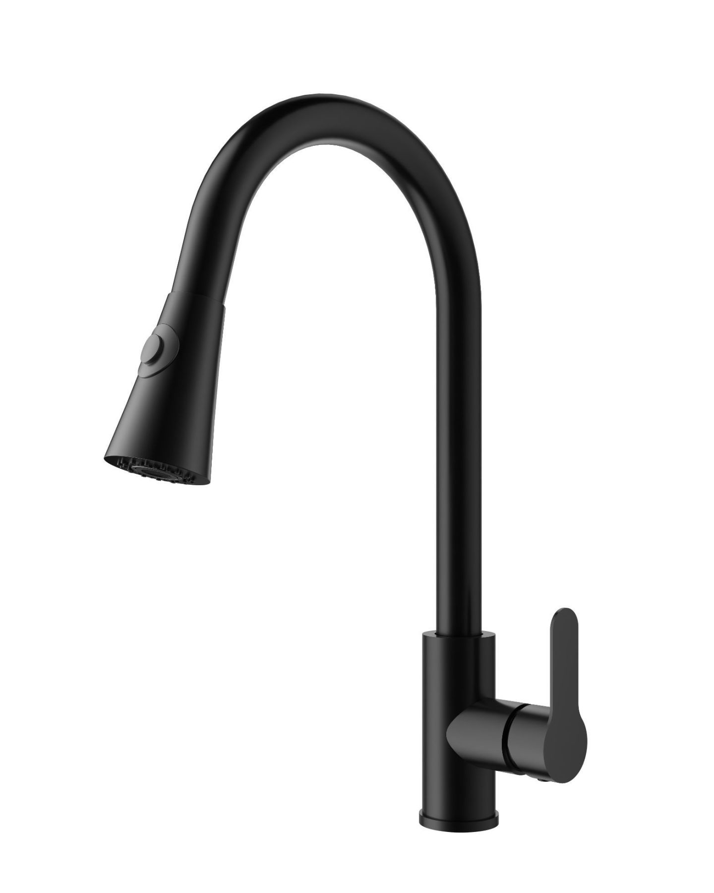 Смеситель для кухни с выдвижным изливом WONZON & WOGHAND, Черный матовый (WW-121E201L-MB)