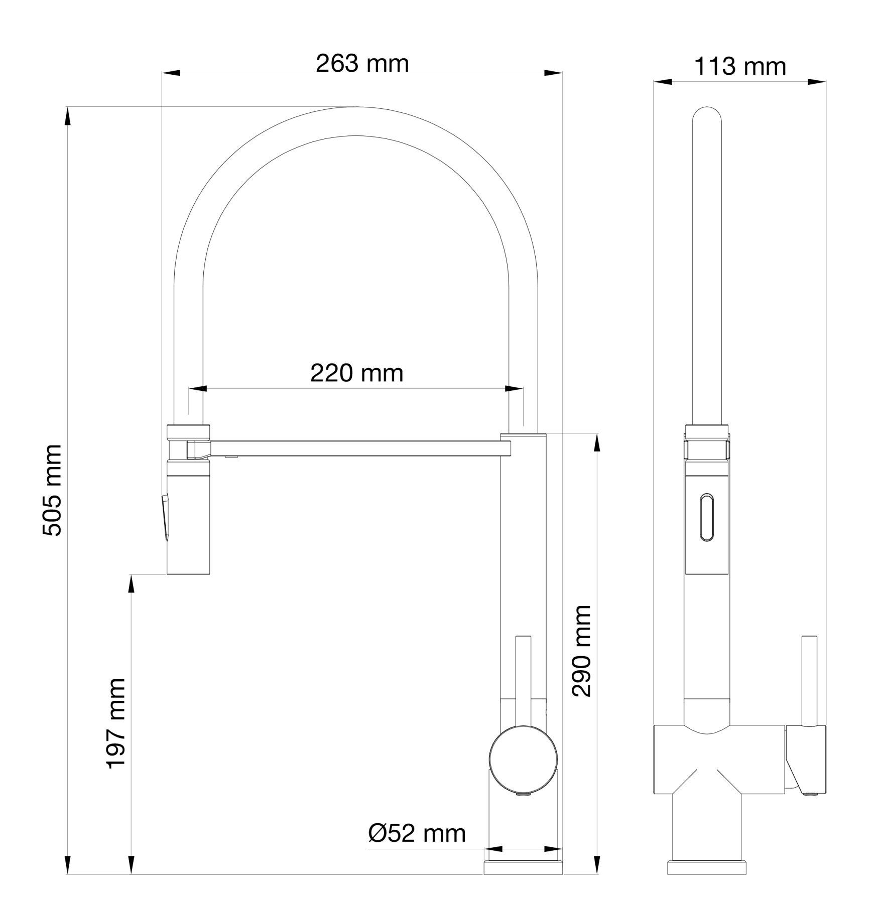 Смеситель для кухни с гибким изливом WONZON & WOGHAND, Темный графит (WW-88438003-BGM)