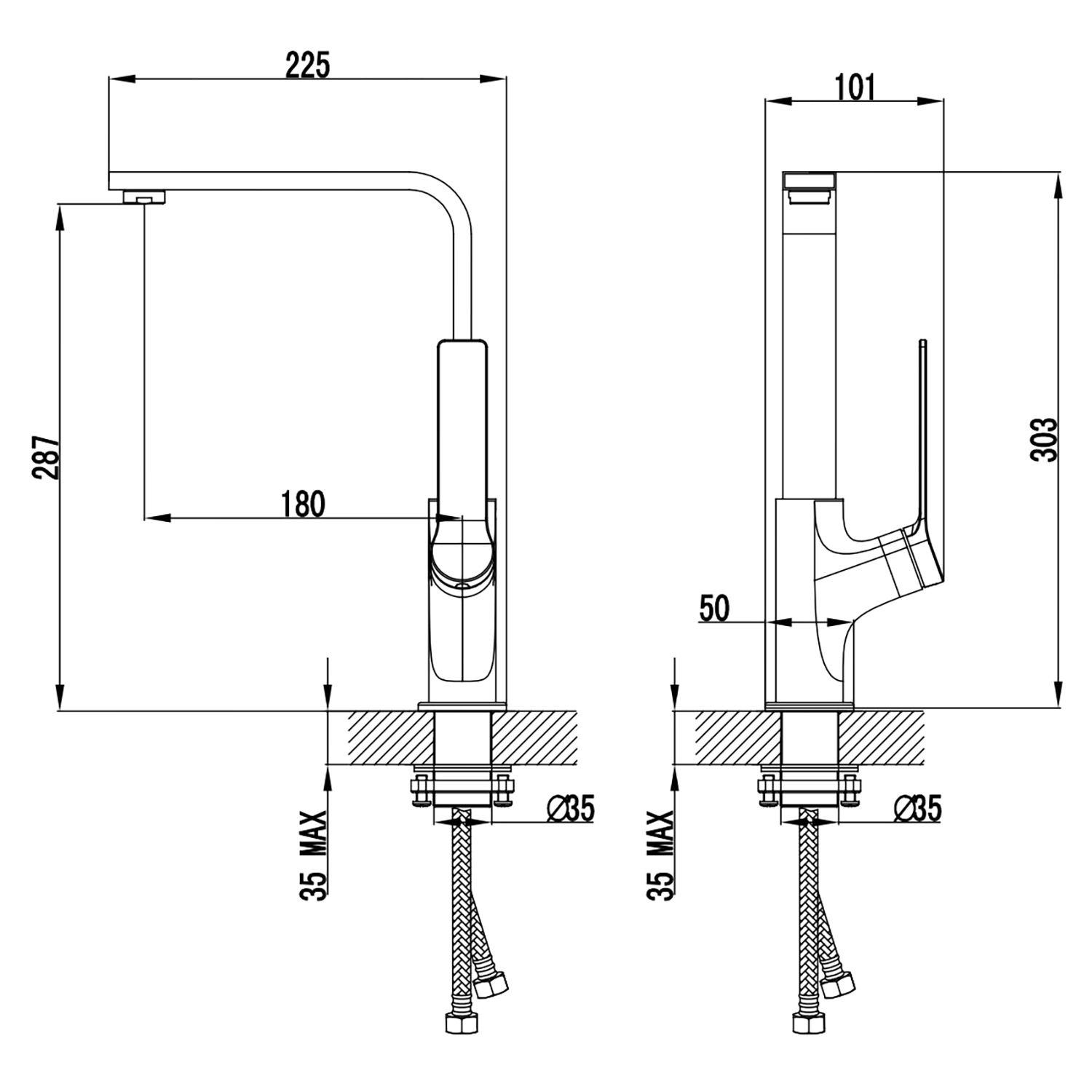 Выдвижной излив:нет