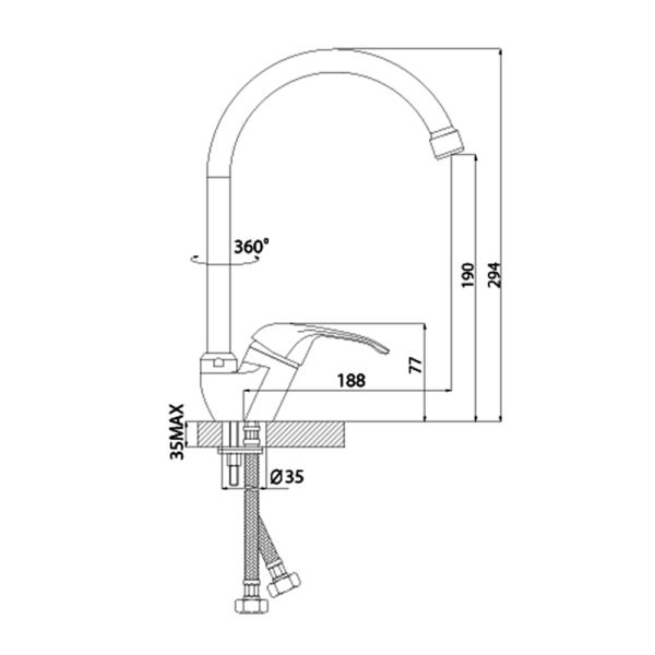 Смеситель Rossinka B35-23 для кухни. Пластиковый аэратор с функцией легкой очистки, керамический картридж 35 мм, гибкая подводка 30 см – 2 шт. Присоединительная группа для горизонтального крепления