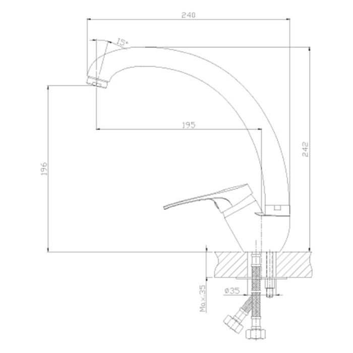 • Высота смесителя: