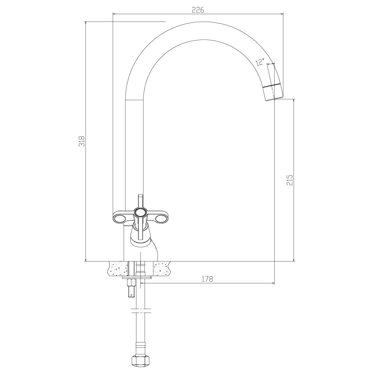 • Высота смесителя: