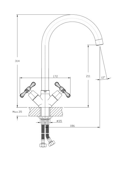 • Высота смесителя: