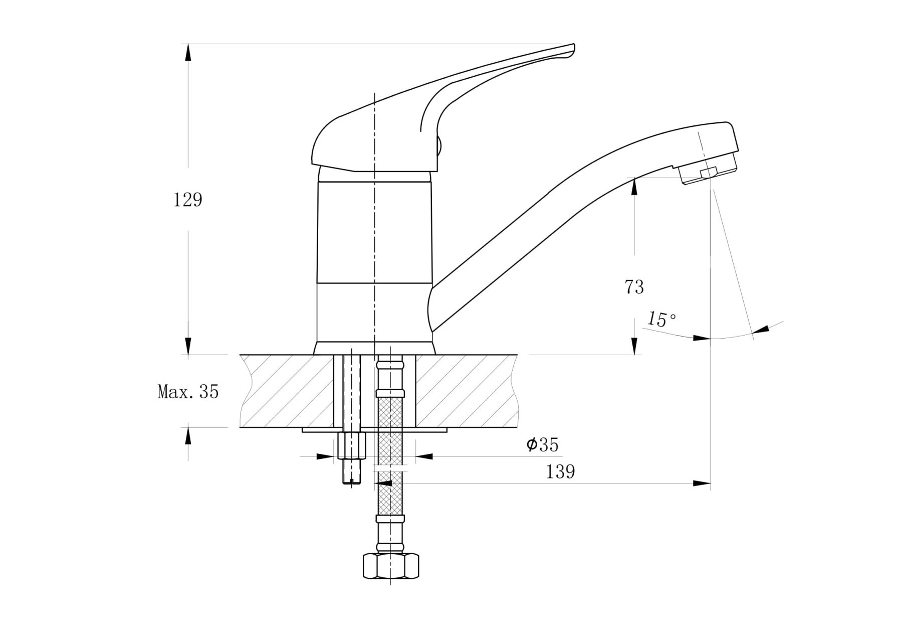• Высота смесителя: