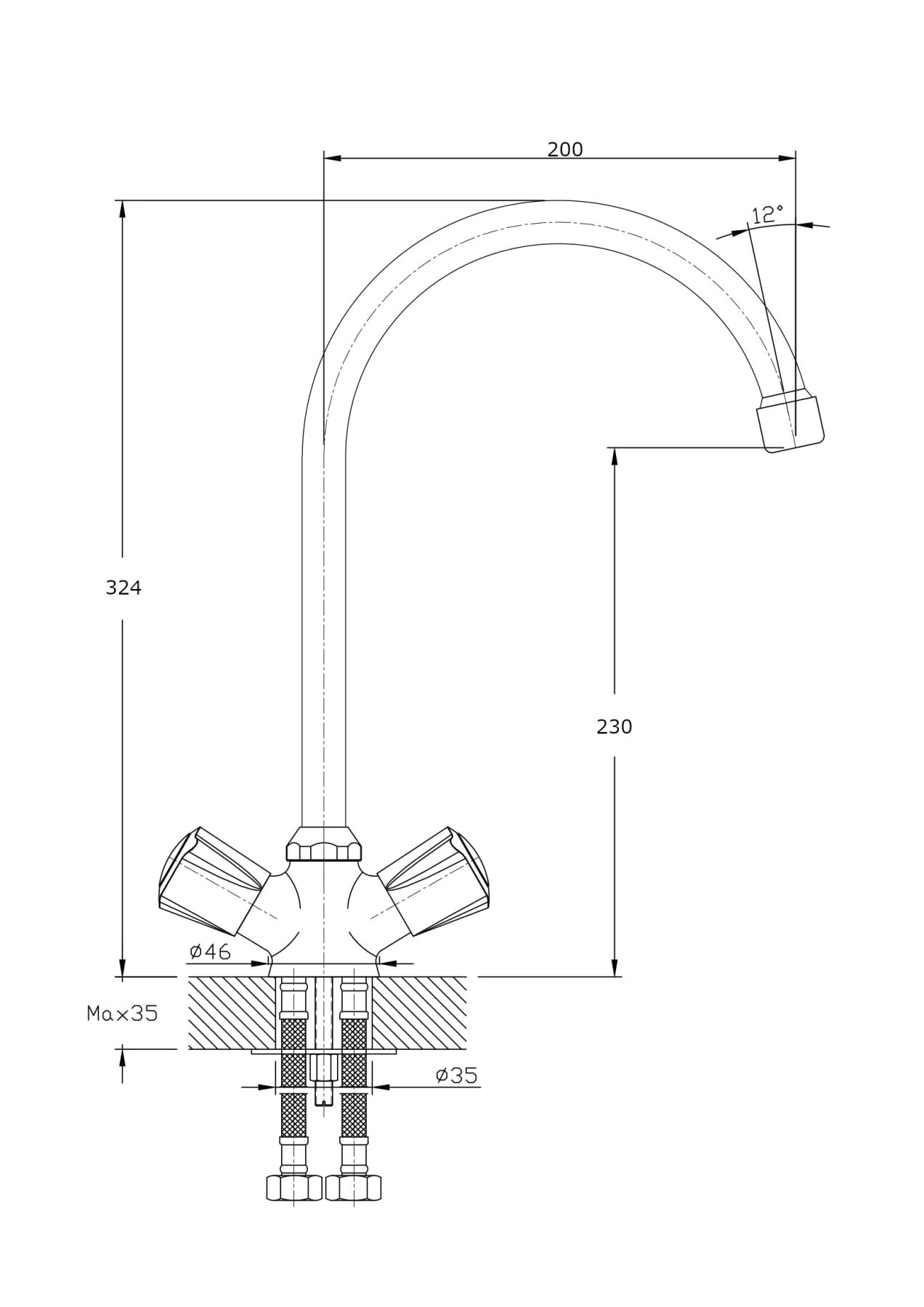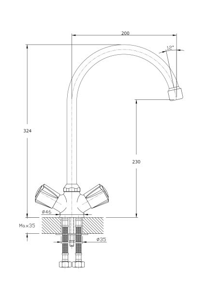 • Высота смесителя: