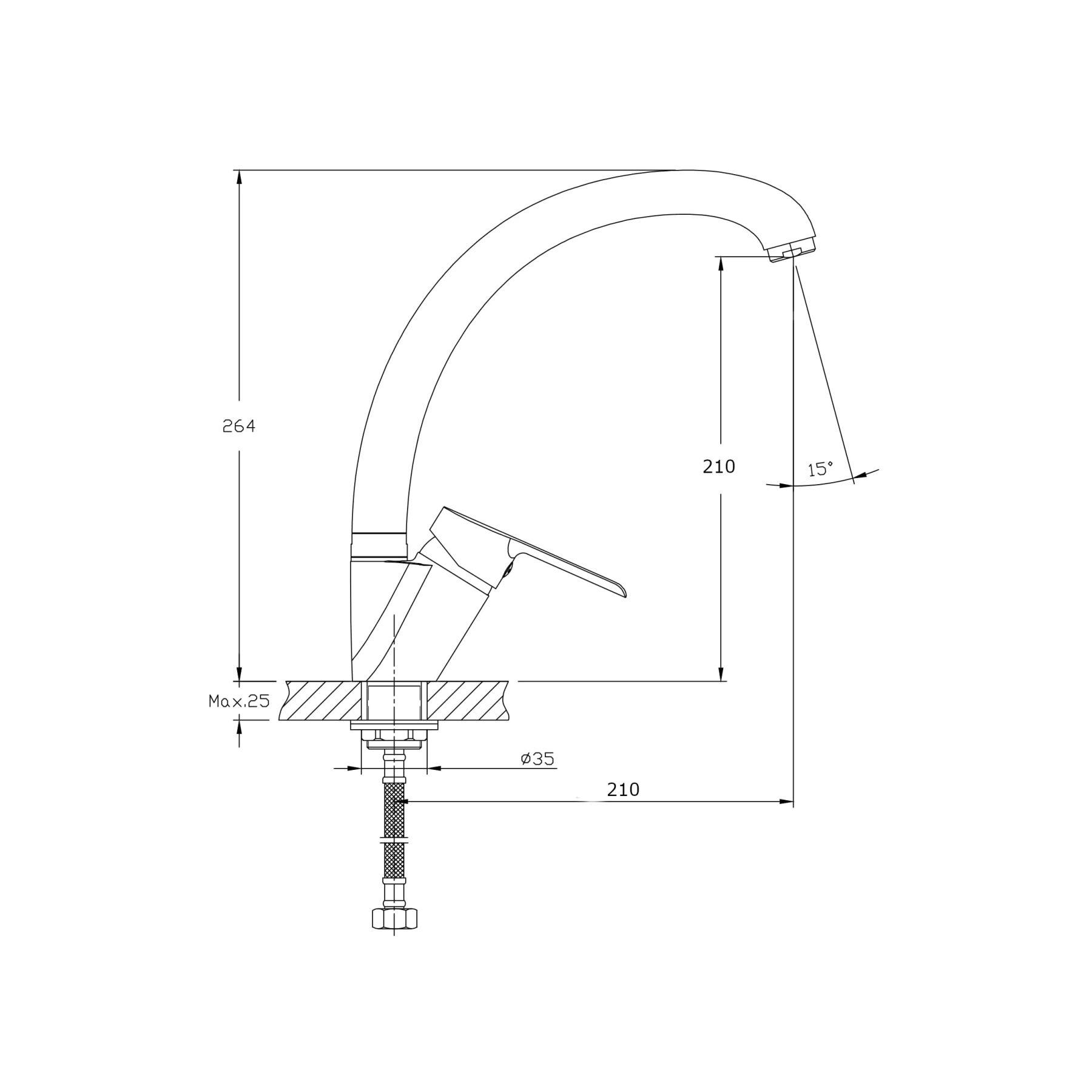 • Высота смесителя: