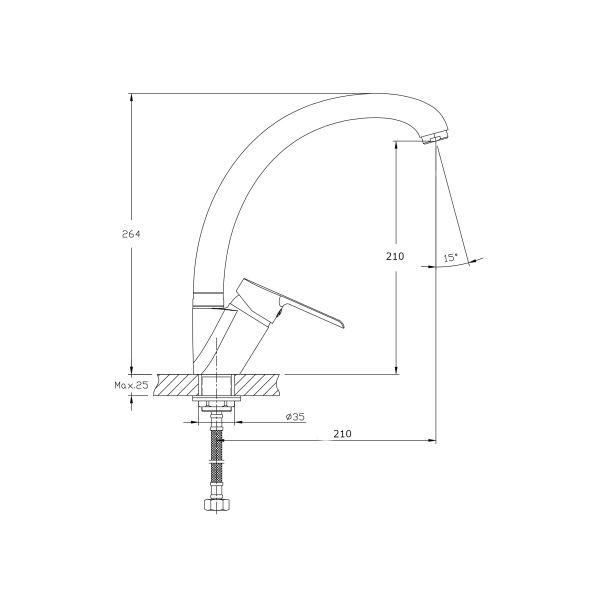 Смеситель для кухни с поворотным изливом RUSH Victori арт.VI7135-22 c металлической ручкой и имеет рычажное управление. В смеситель установлен картридж D-35 (RSH102) с керамическими пластинами. Высота смесителя 250 мм. Излив поворотный 360гр, 210 мм. Высота излива до аэратора 210 мм. Аэратор изготовлен из пластика с нержавеющим корпусом, угол наклона аэратора -15 гр. В комплекте гибкая подводка с латунными гайками 35см - 2 шт, присоединительная гайка S-30мм, втулка-27мм, фум-лента, индивидуальный пакет, паспорт, гарантийный талон.