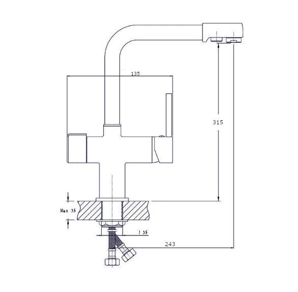 Смеситель для кухни с подключением к фильтру с питьевой водой RUSH арт. MS9035-33Black изготовлен из высококачественной латуни и имеет рычажное управление. В смеситель установлен картридж D-35 с керамическими пластинами. Излив поворотный, 243 мм. Высота излива до аэратора 315 мм. Аэратор изготовлен из пластика с нержавеющим корпусом. В комплекте кран-букса с керамическими пластинами (для крана с питьевой водой) гибкая подводка с латунными гайками 35 см - 2шт, универсальная присоединительная группа, фум-лента, индивидуальный пакет, паспорт, гарантийный талон.