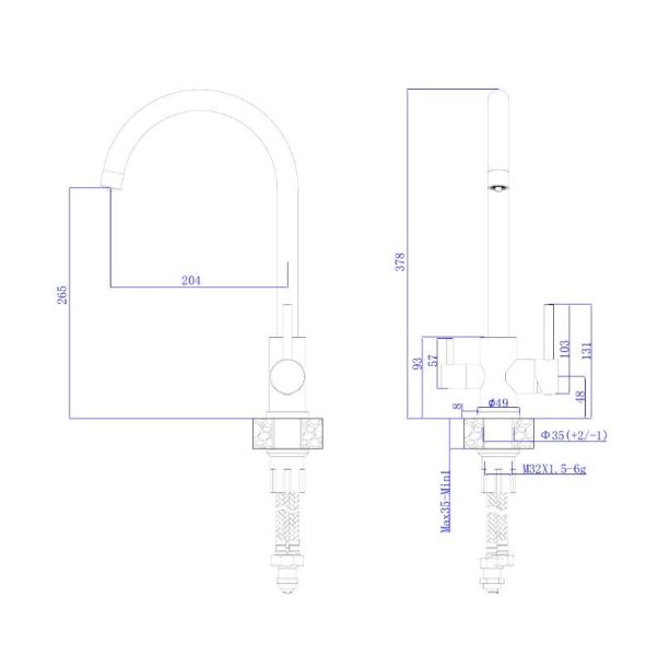Смеситель для кухни с подключением к фильтру с питьевой водой RUSH арт. SUS9035-37Black с металлической ручкой изготовлен из нержавеющей стали SUS304 и имеет рычажное управление. В смеситель установлен картридж D-35 с керамическими пластинами. Высота смесителя 378мм. Излив поворотный 204мм. Высота излива до аэратора 265мм. Аэратор изготовлен из пластика с нержавеющим корпусом. В комплекте кран-букса с керамическими пластинами (для крана с питьевой водой) гибкая подводка с гайками 40 см - 2шт, универсальная присоединительная группа, фум-лента, индивидуальный пакет, паспорт, гарантийный талон.