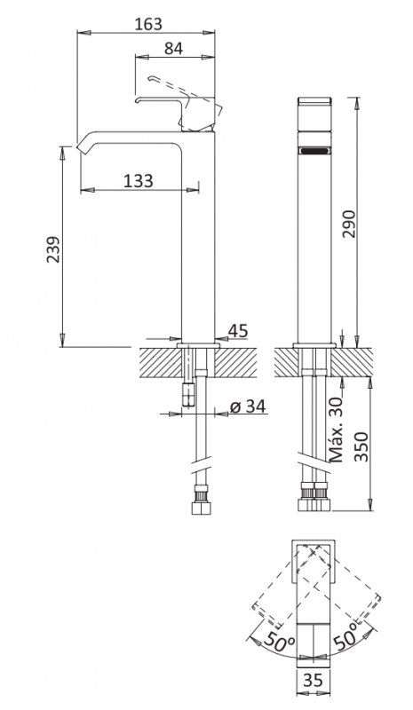 • Высота смесителя: