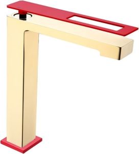 Смеситель для накладной раковины Boheme Q золото/красный 142-GR