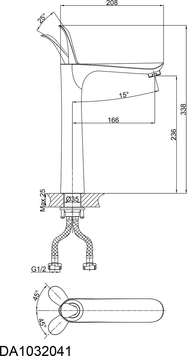 • Высота смесителя: