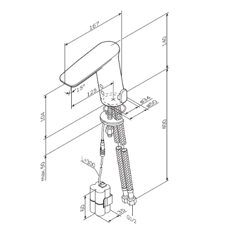 • Высота смесителя: