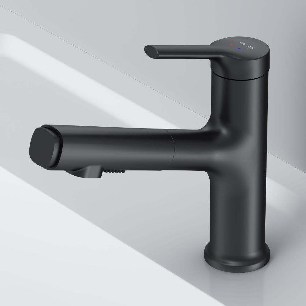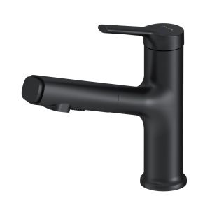 Смеситель для раковины AM.PM X-Joy S F85B02922 черныйСмеситель для раковины с выдвижной лейкой. Цвет-хром. Два режима вытяжного излива и удобное переключение одним нажатием для облегчения решения ежедневных бытовых задач. В комплекте поставки: смеситель, подводка, крепеж, инструкция
