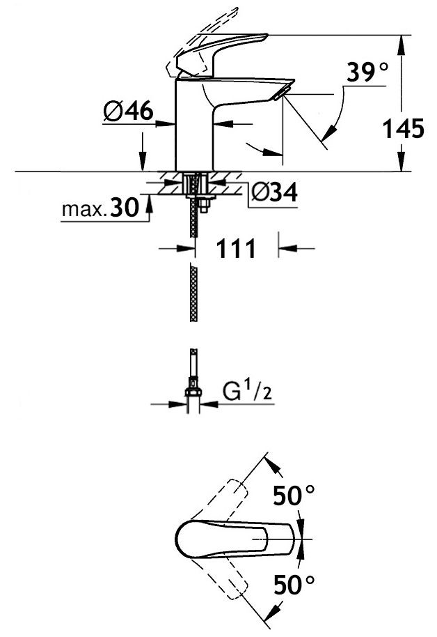 • Высота смесителя: