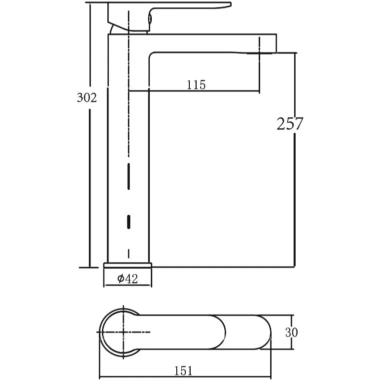 • Высота смесителя: