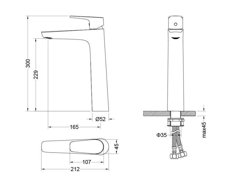• Высота смесителя: