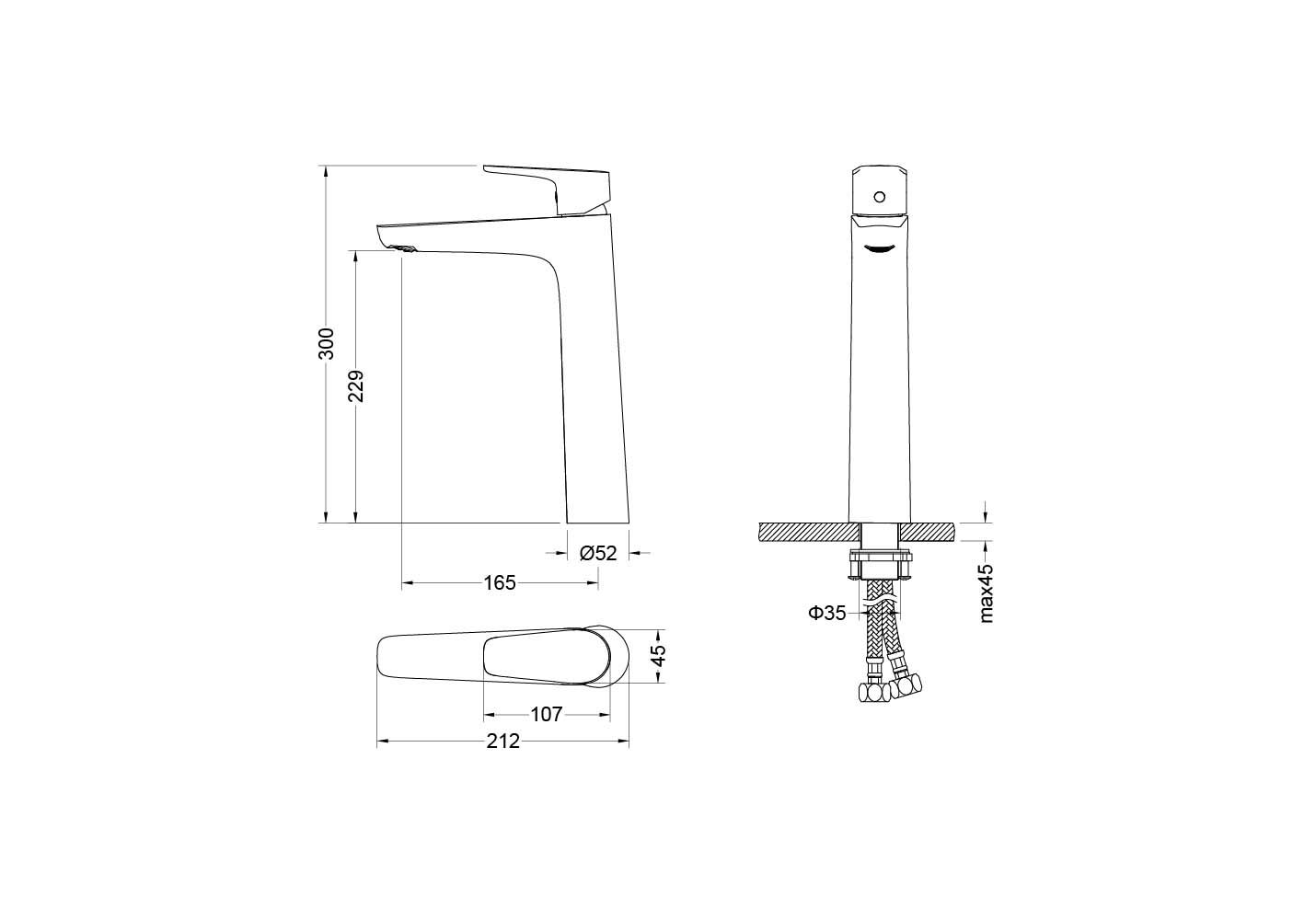 • Высота смесителя:
