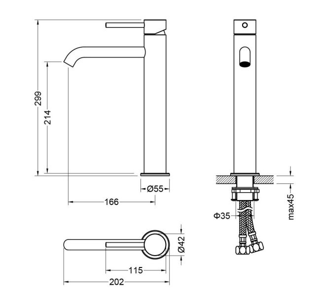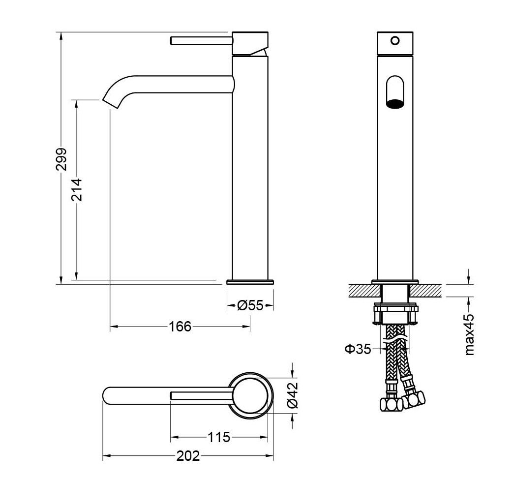 • Высота смесителя: