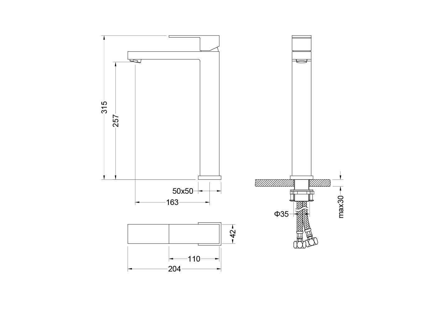 • Высота смесителя: