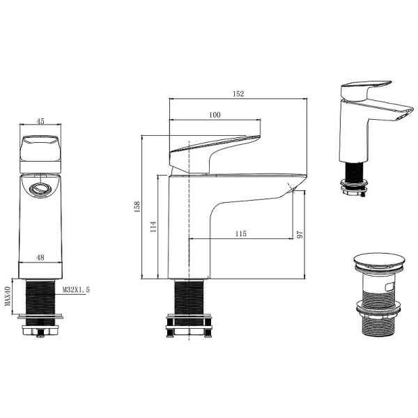 Донный клапан в цвет смесителя из нержавеющей стали марки SUS 304.