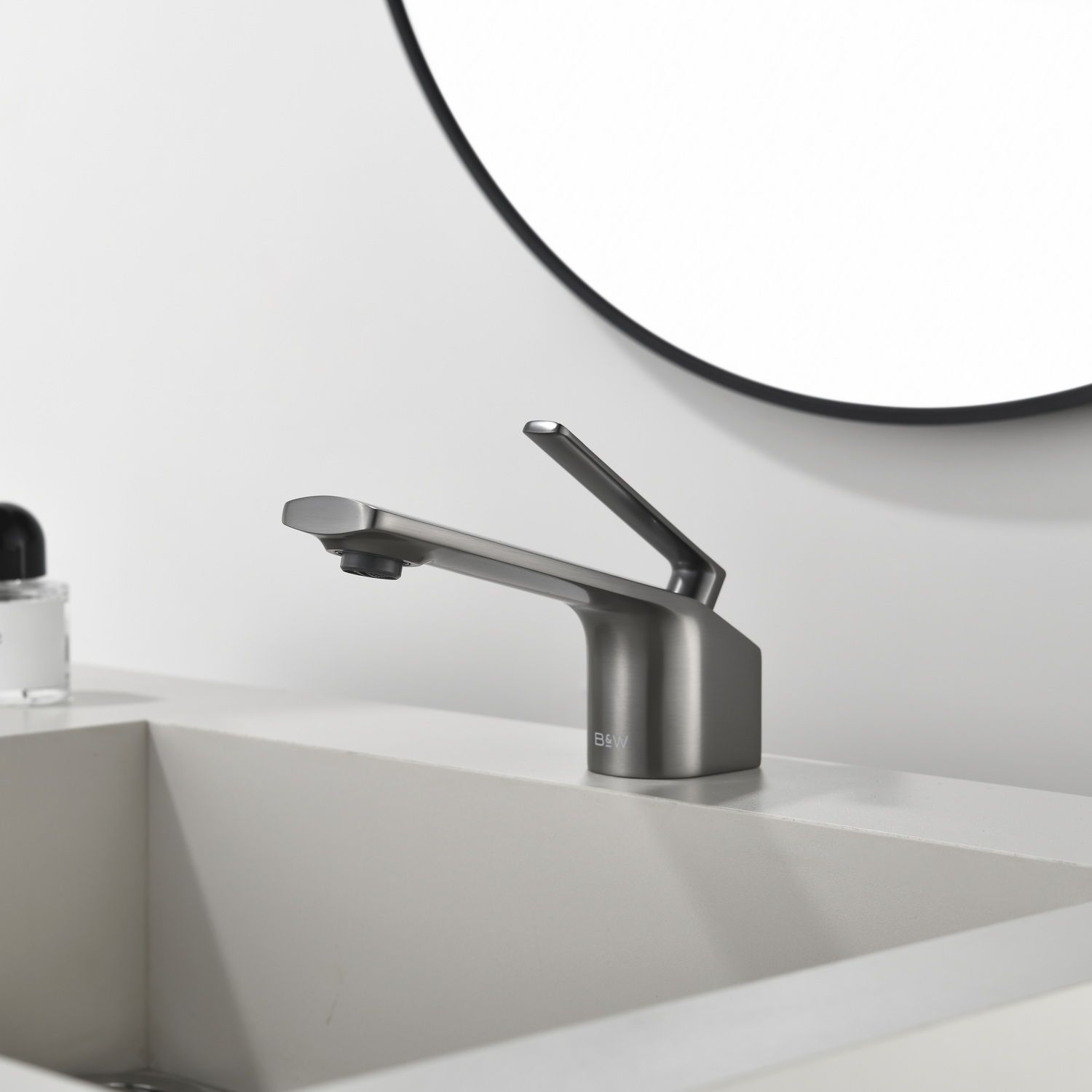 Смеситель для раковины датского производителя Black&White в цвете оружейная сталь. Продукт изготовлен из сантехнической латуни – безопасного для здоровья сплава, обработанный PWD покрытием. Управление давлением и температурой воды происходит с помощью керамического картриджа повышенной пропускной способности. Низкий силуэт смесителя гармонично смотрится на раковинах с мягкими формами, а также минимизирует количество брызг, а излив с возвышением позволяет комфортно мыть руки.